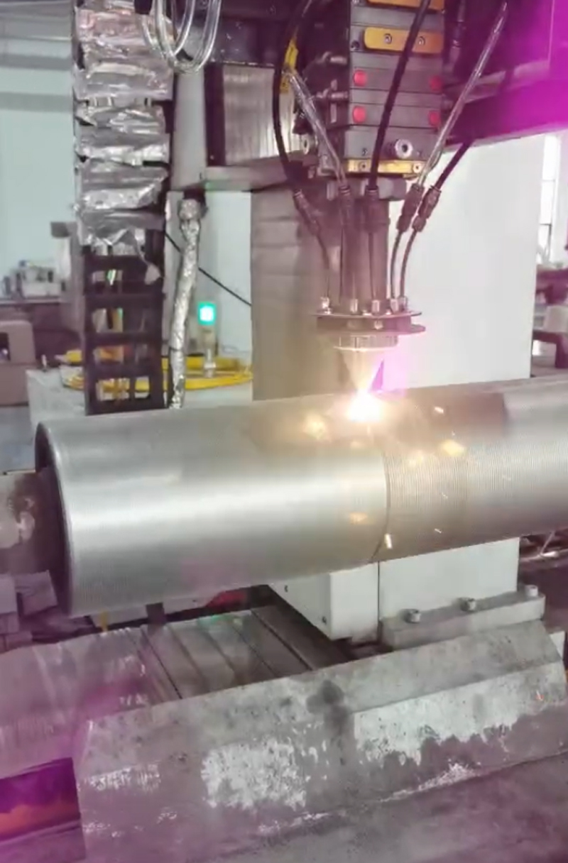 激光熔覆修復(fù)是通過高能激光束將合金、陶瓷等熔覆粉末與活套輥表面基體同步熔化,在惰性氣體保護(hù)下快速凝固,形成冶金結(jié)合的高性能涂層的先進(jìn)工藝。其核心優(yōu)勢(shì)在于實(shí)現(xiàn) “修復(fù) + 強(qiáng)化” 雙重效果:既恢復(fù)輥體尺寸精度,又通過熔覆層提升表面性能,解決傳統(tǒng)修復(fù)中結(jié)合力弱、易脫落的痛點(diǎn)。